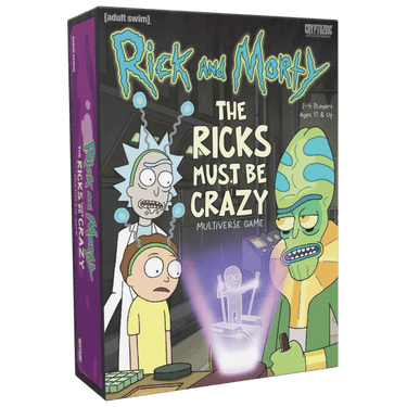 Rick and Morty: The Ricks Must Be Crazy Multiverse Game is an engine-building game (of sorts) that takes place in the four locations, a.k.a. "'verses", from the popular Rick and Morty episode "The Ricks Must Be Crazy": the Rickverse, Microverse, Miniverse, and Teenyverse. Due to time dilation and other pseudo-scientific malarkey, the lower you travel in the 'verses, the greater number of actions you have each round — but some of those lower 'verses are a bit primitive, so the contraptions you build to use all that sweet power on might not work that well!