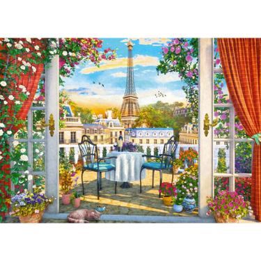 Bonjour Paris! Nothing compares to a sunny terrace wine in the French capital. This 1000 piece puzzle features a beautiful terrace overlooking the sights of Paris with the Eiffel tower in the background.