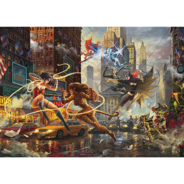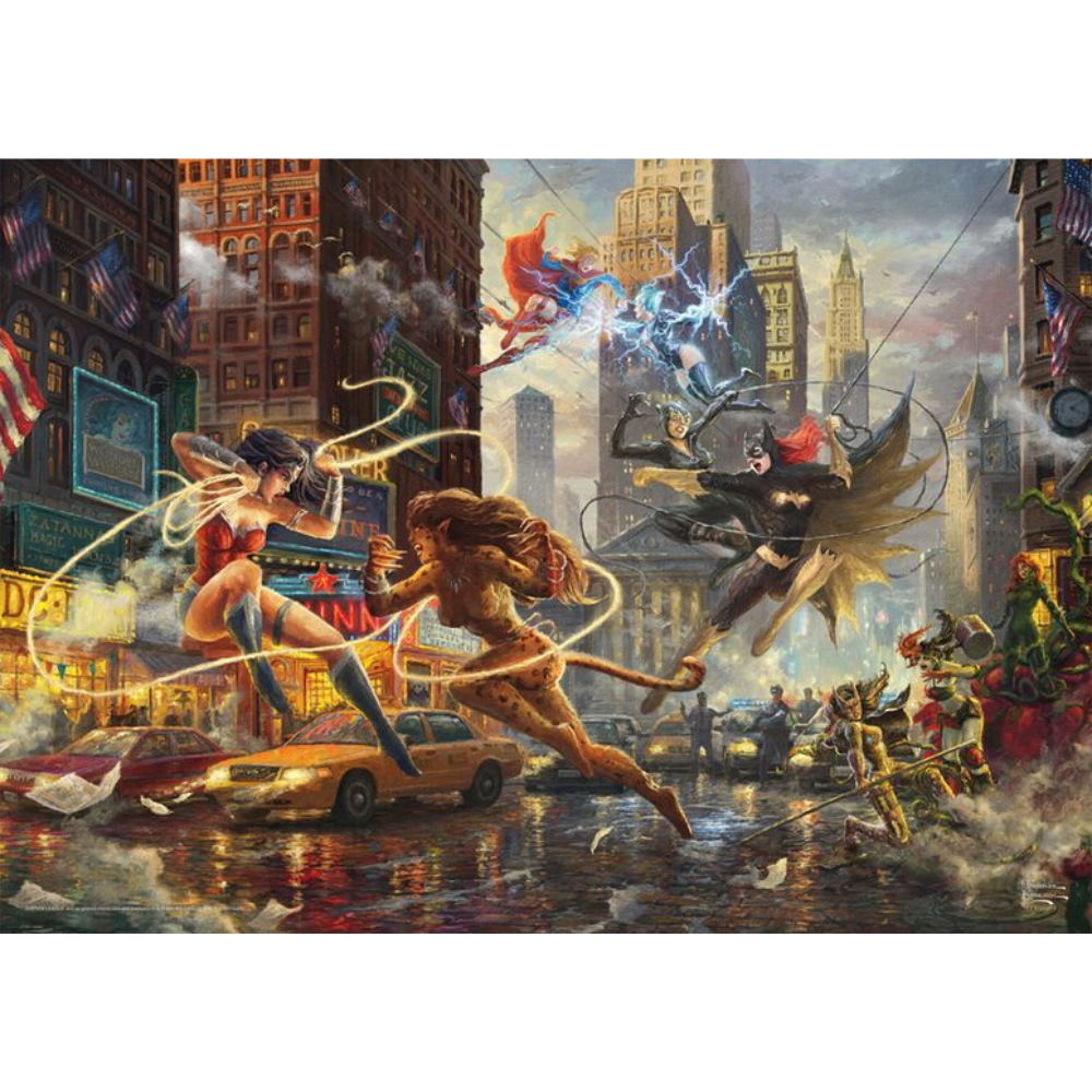 Power, courage, and justice take centre stage in this action-packed 1000-piece puzzle from Schmidt, brought to life by Thomas Kinkade Studios. Featuring a fierce lineup of DC’s legendary heroines—including Wonder Woman, Batgirl, Supergirl, and more—this dramatic scene unfolds in the heart of a bustling city, as the forces of good and evil clash in a spectacular showdown.