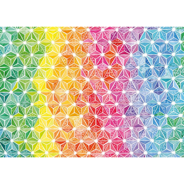 Bring a splash of colour and geometric beauty to your puzzle collection with the Josie Lewis - Colourful Triangles 1000-piece jigsaw puzzle from Schmidt. This mesmerising artwork features an intricate pattern of overlapping geometric shapes, blending seamlessly into a vibrant rainbow gradient that creates a visually stunning effect.