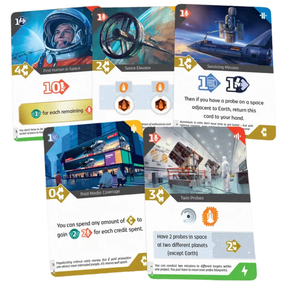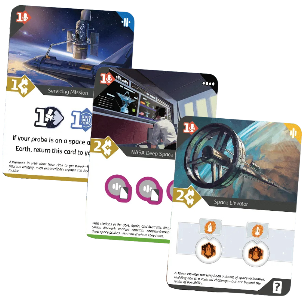 In addition to these organisations, the expansion adds three new alien species, each with their own unique twists, and over forty new project cards inspired by real-world initiatives. These integrate seamlessly into the main deck, providing even greater variety and strategic options.