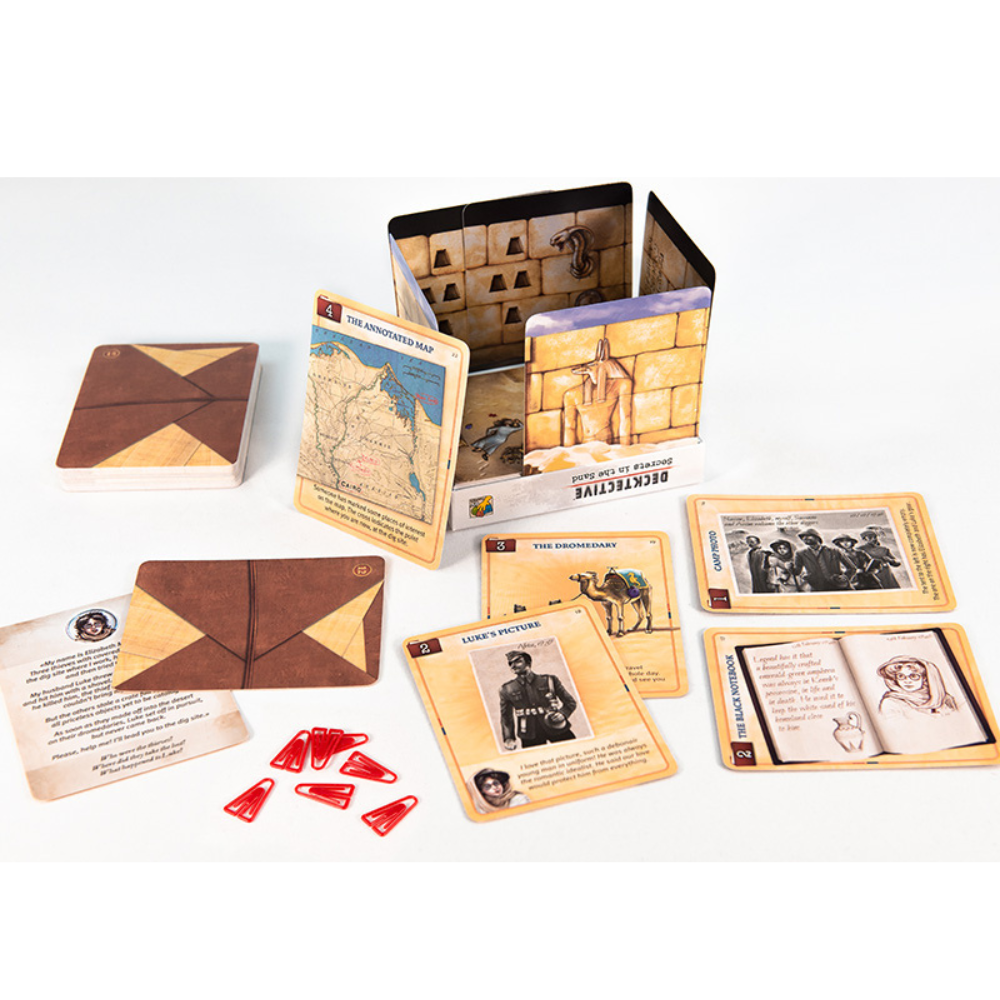 In Decktective: Secrets in the Sand, three grave robbers raid an archaeological dig to steal precious artifacts, then flee into the Egyptian desert. A lifeless body is found in the sand... Who are the thieves? And how did the victim die?