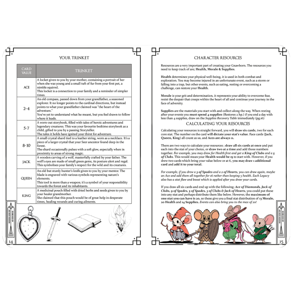 The Forest of Hyill is a forest that is impossibly big to your little Mousefolk, known in this world as Gnawborn. You will choose your legacy, and backstory and set off from the village of Brambletrek.