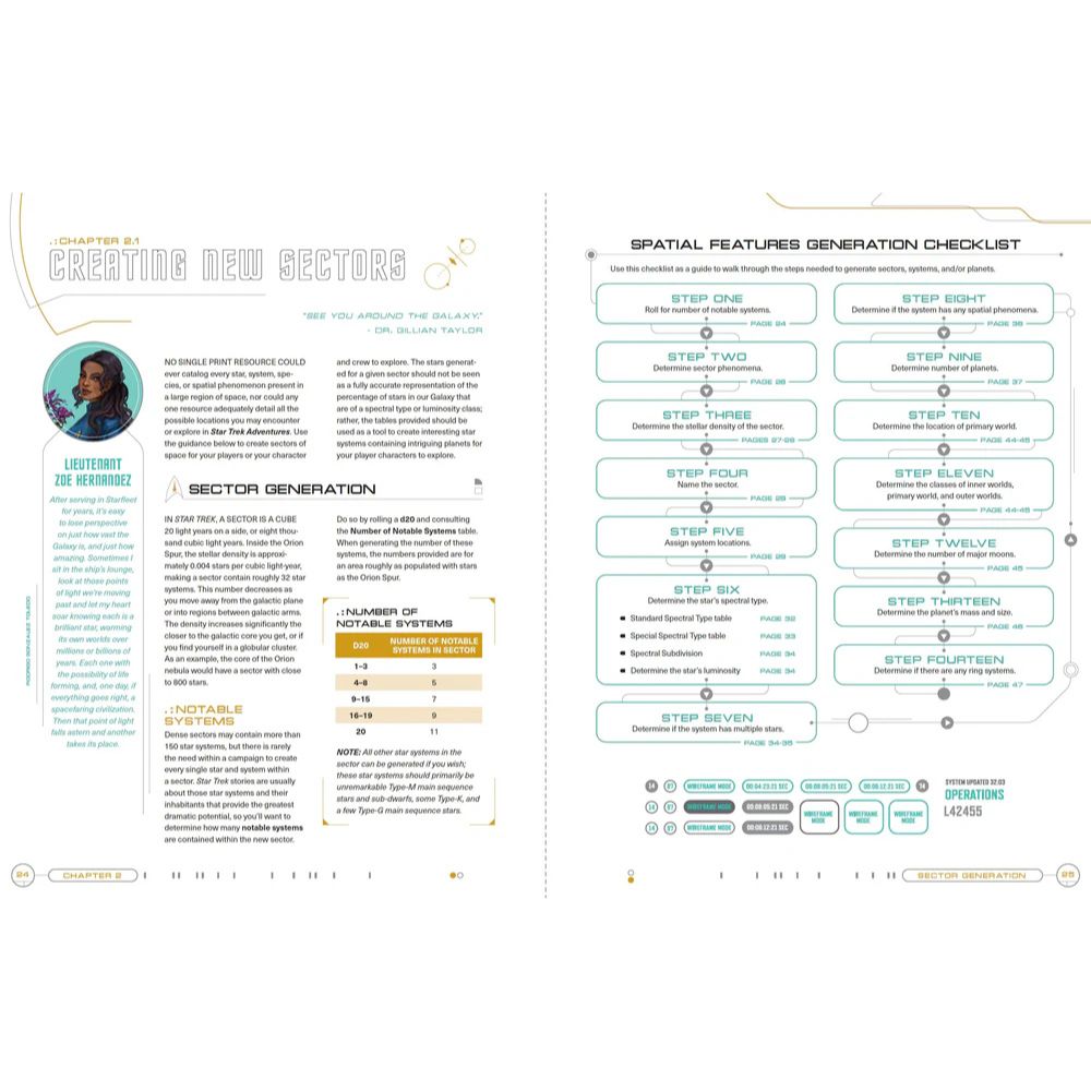 This Exploration Guide is essential reading for any Star Trek Adventures crew interested in expanding their characters, missions, and campaigns into the final frontier and creating new sectors, worlds, and environments to discover and explore.