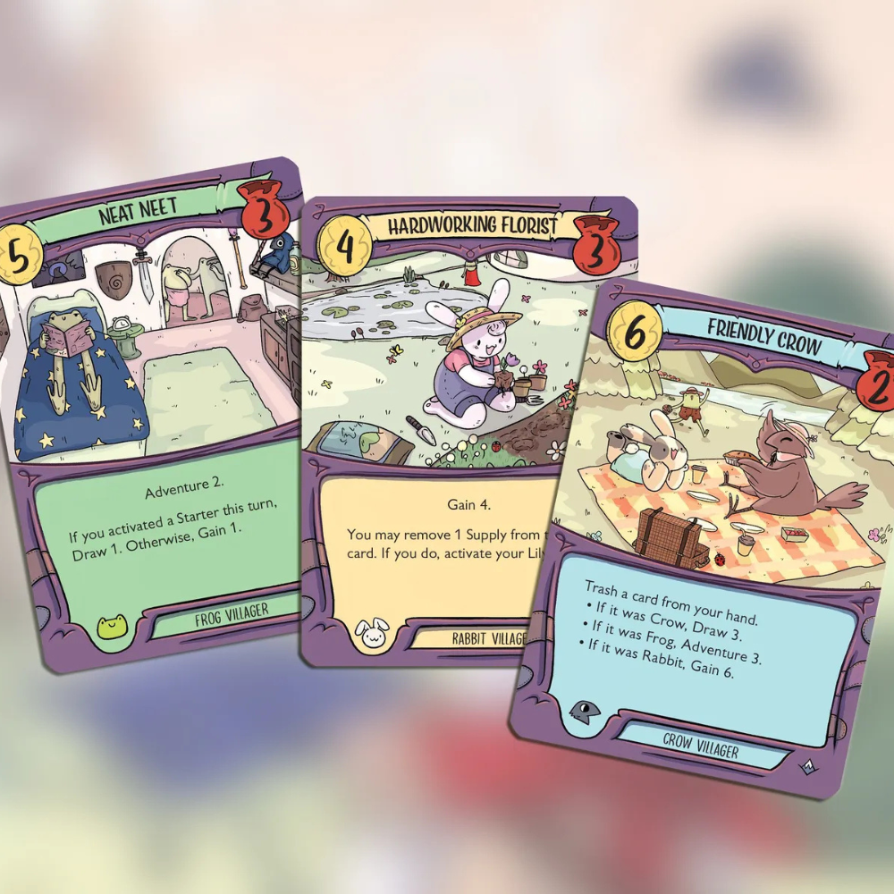 In this quirky world, you’ll share a deck of cards packed with wild characters, clever combos, and unexpected twists. Each turn, you’ll race to build powerful synergies... only to tear them apart when the time is right. Cards won’t last forever, but only the ones you have fully used up score points, making timing everything.