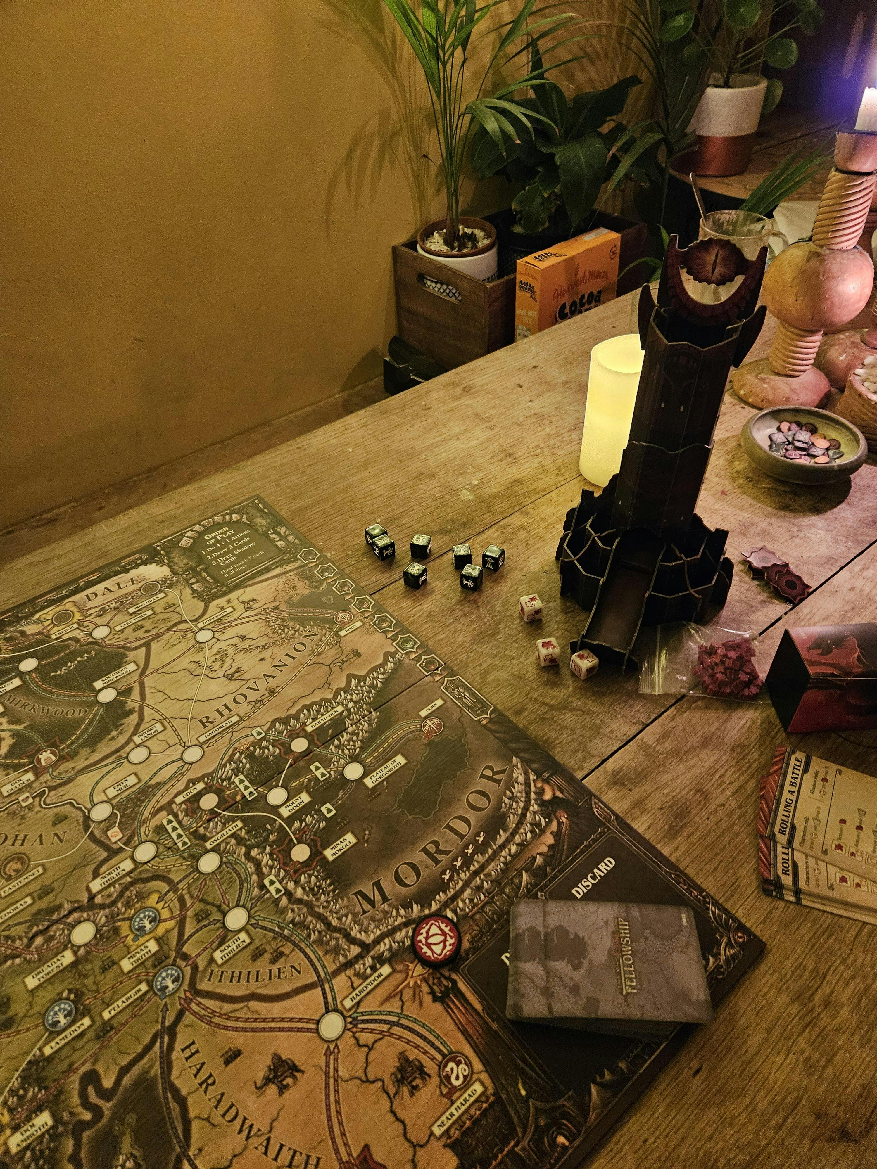 The Lord of the Rings: Fate of the Fellowship is Matt Leacock's most mechanically-rich Pandemic System design to date. Gather heroes to defend the havens of Middle-earth from advancing shadow troops, complete objectives that will change each time you play, and help Frodo evade the hunting Nazgûl as he travels to Mount Doom to destroy the One Ring.