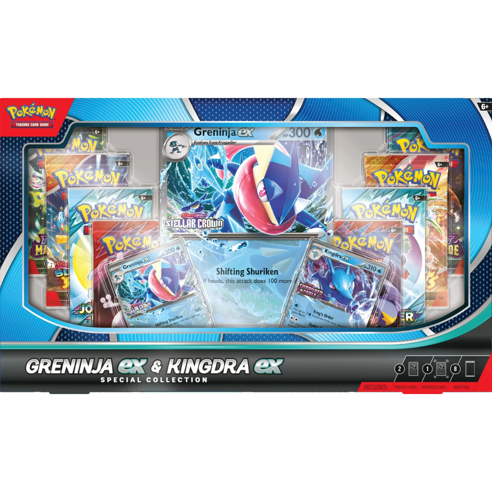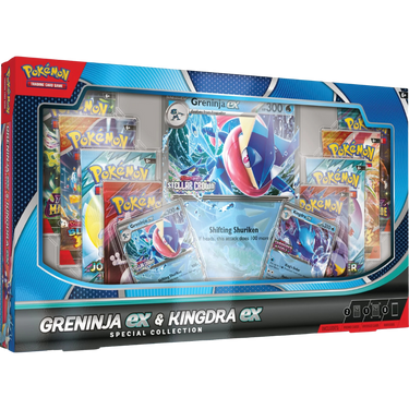 The Pokémon TCG: Greninja ex & Kingdra ex Special Collection includes: