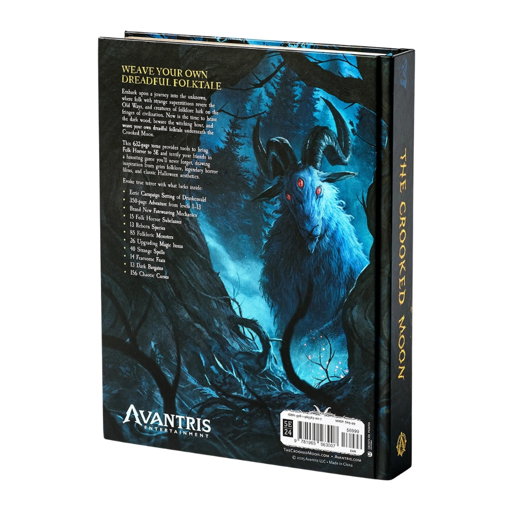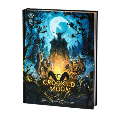 The Crooked Moon is a massive 632-page tome that brings Folk Horror to 5E! Inside, you'll find player options & GM tools to terrify your friends in a haunting game you’ll never forget, drawing inspiration from grim folklore, legendary horror films, and classic Halloween aesthetics.