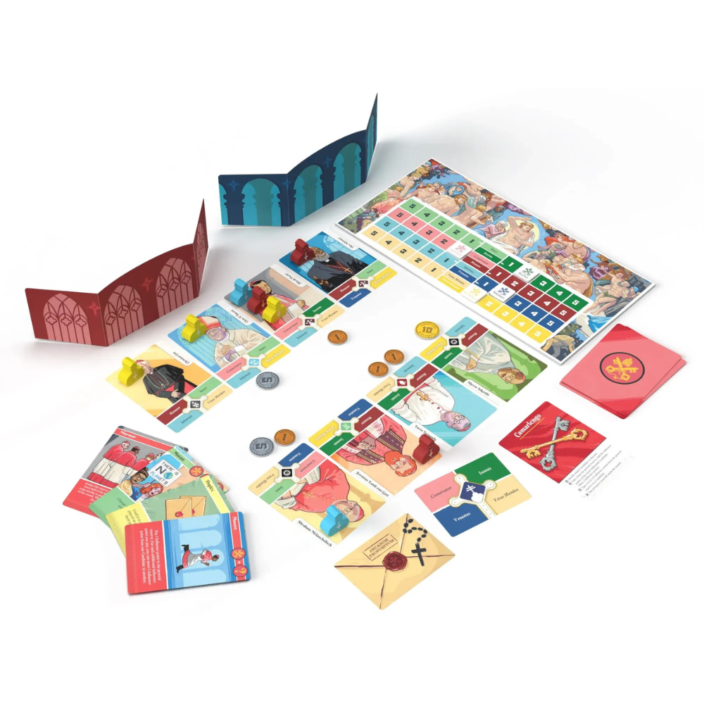 Step into the heart of the Conclave, where tradition, intrigue, and ambition collide. In Habemus Papam, players take on the roles of Cardinal factions, each representing distinct interests within the Catholic Church. Your mission? To influence the election of the next Pope by supporting a candidate whose traits align with your faction's public profile — covering their stance on the church, age, personality, and origin — while secretly pursuing a hidden agenda that might conflict with your stated goals.