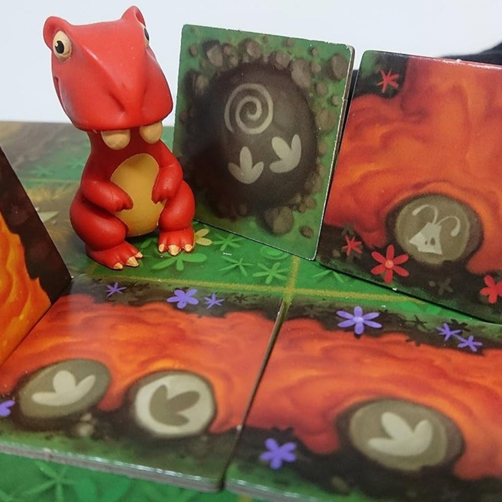 In this game for 7 years old and more, you need to react, anticipate, and work together as a team to save the four dinosaurs in SOS Dino! Draw a tile, place it on the board, then move one of the dinosaurs closer to the safety of the mountains. Pay attention to the lava and avoid the meteor showers!