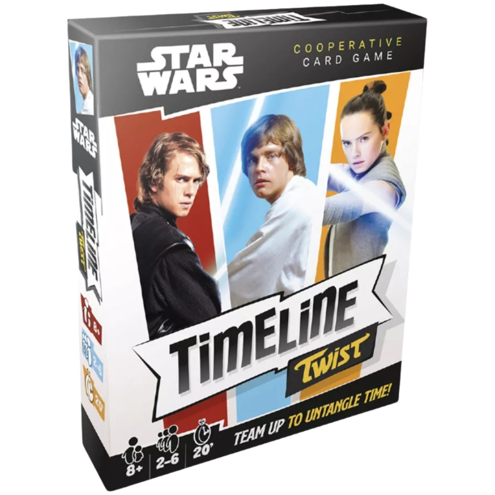 In this new Star Wars edition, players team up, communicate and coordinate to find the best strategy to play all 36 cards in the game. The team's goal is to get rid of all the cards the players have in hand, either by placing as many events as possible in the right order on the timelines, or by discarding them wisely.