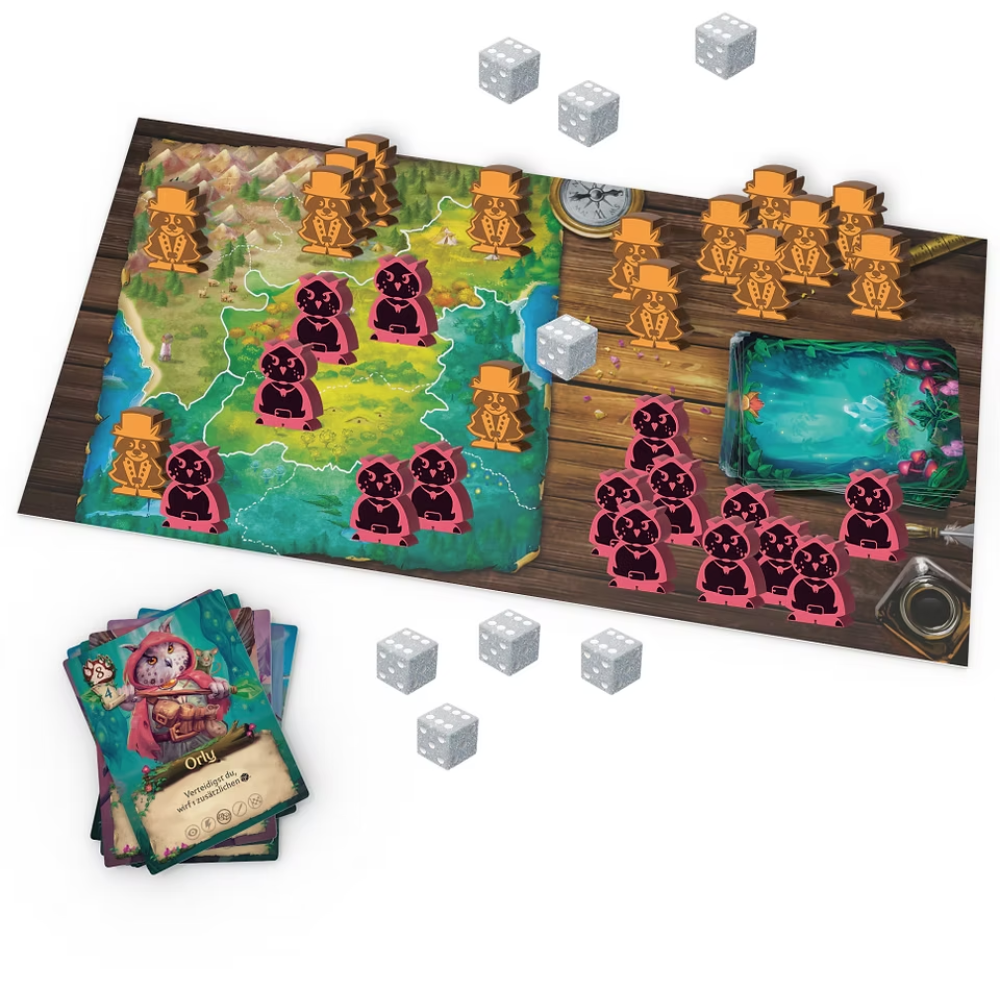 The actions allow you to strengthen your own units on the game board or to move them between areas on the map. When your units meet, you engage in a relentless battle with your characters, card effects and combat dice.