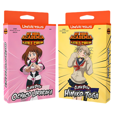 Excite new players with two brand new Clash Decks featuring Ochaco Uraraka and Himiko Toga! Each display contains eight ready to play Clash Decks for the MY HERO ACADEMIA COLLECTIBLE CARD GAME and serve as a great entry point for new players!