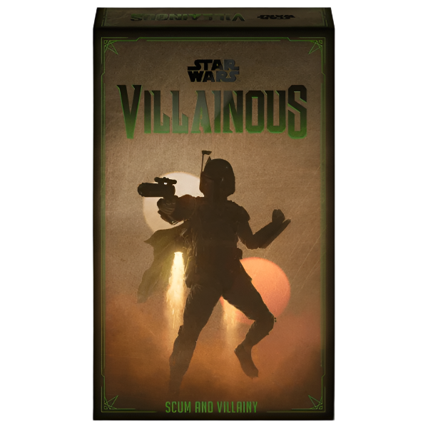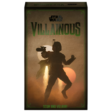In Star Wars Villainous: Scum and Villainy, players choose to play one of three iconic villains from the Star Wars galaxy, including Boba Fett. Depending on their villain's unique power, players will use their villain's "ambition" to perform actions that power effects based on the villain's use of the Force, strategic leadership, or sheer luck. The game also incorporates villain-specific missions and rules for iconic ships and transports from all corners of the Star Wars galaxy.