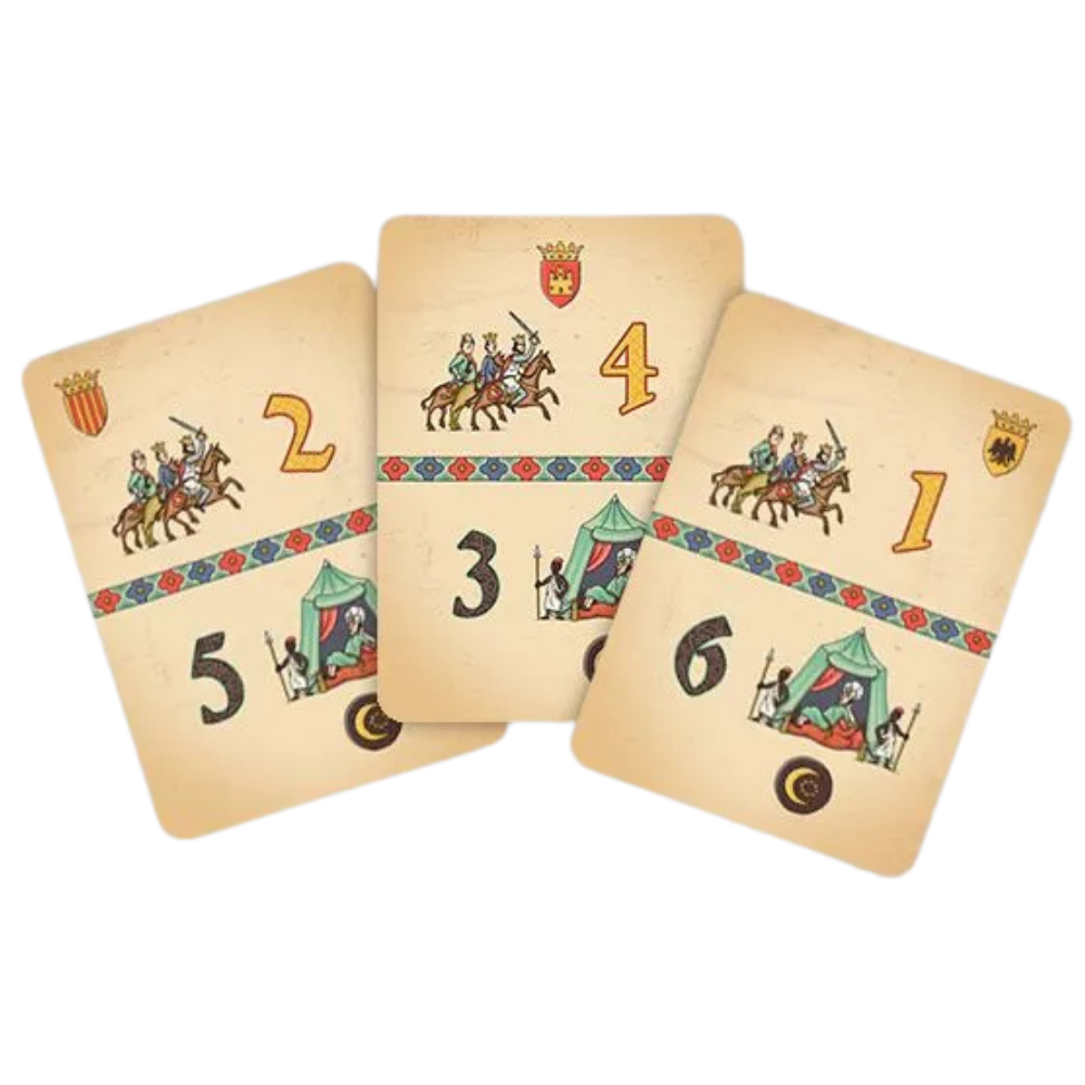 Victory conditions: the Black Guard troop is eliminated (Christian); 8 or fewer troops on the battlefield and no Christian in the Muslim zone (Muslim); double or more troops than the rival (Both players).