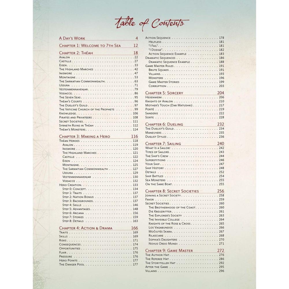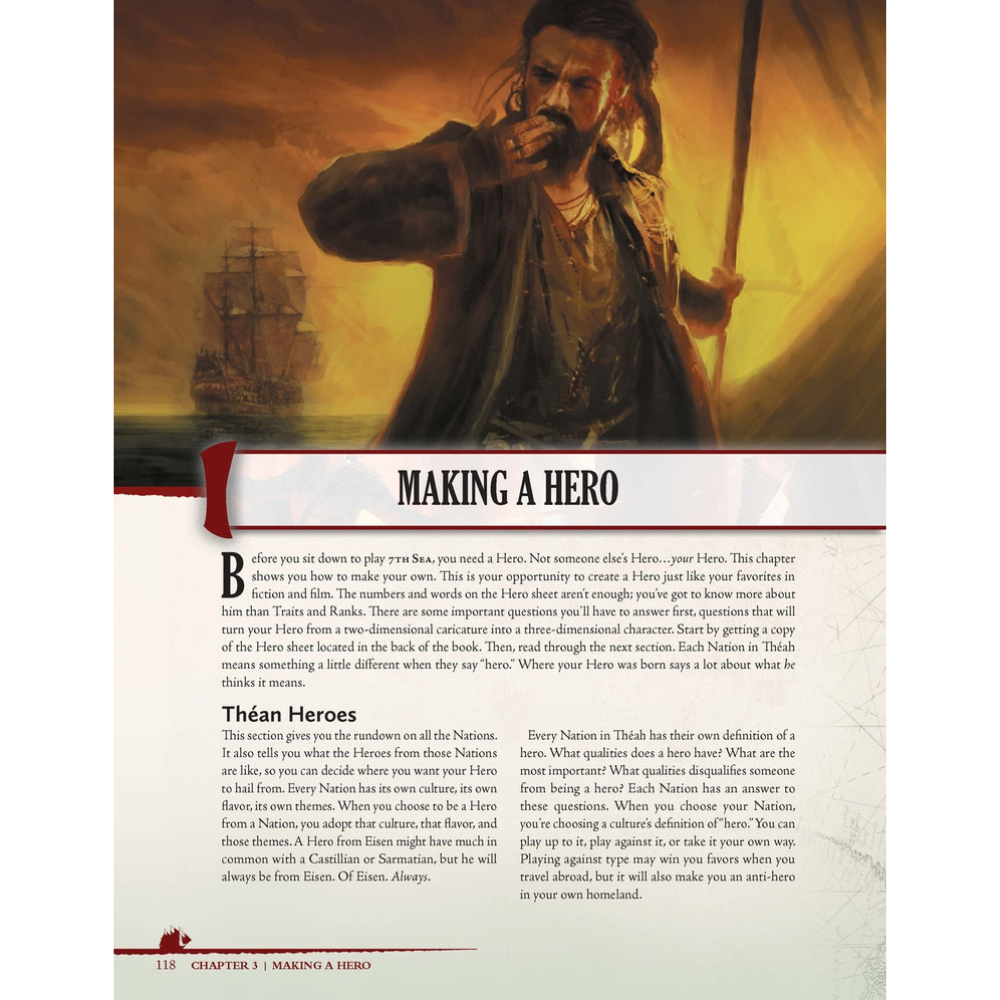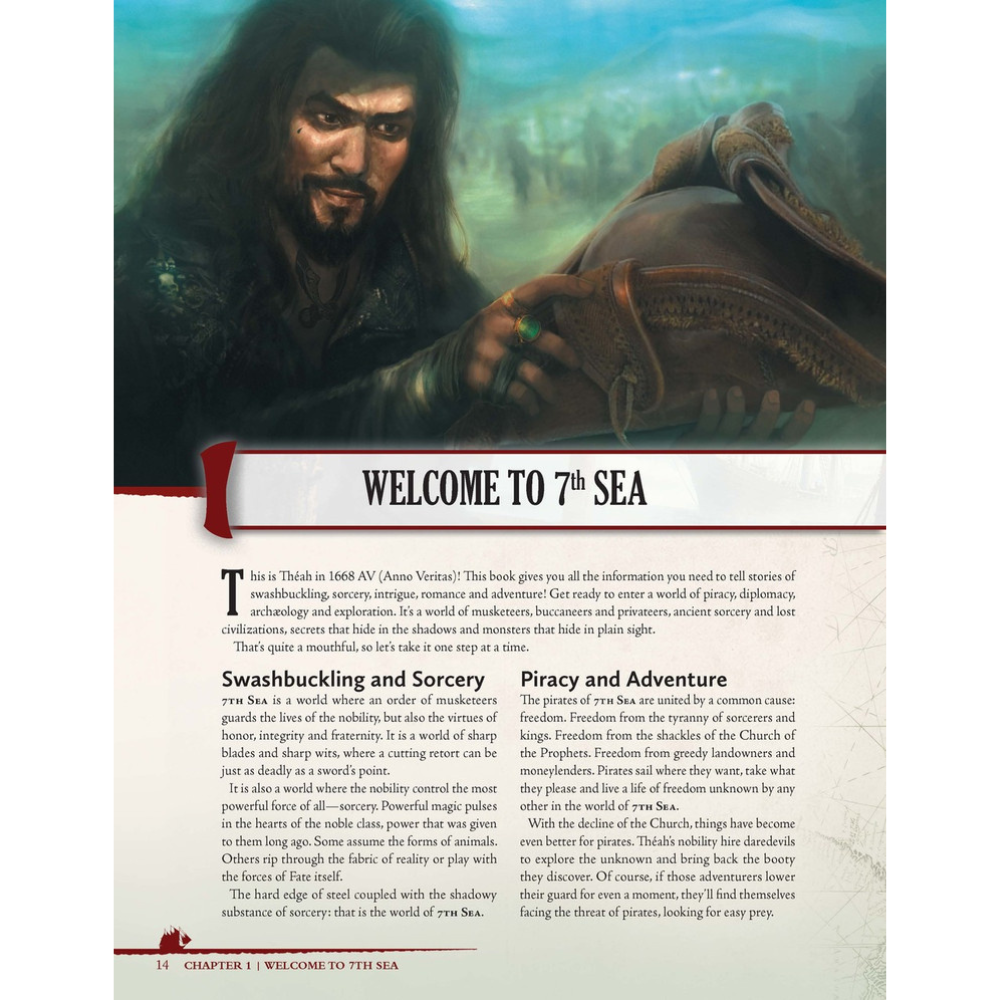 7th Sea is the premier tabletop game of sabres, ships, and high adventure! Packed together in a gorgeous hardcover book, these 300 pages are laden with gorgeous art that fully captures the imagination.