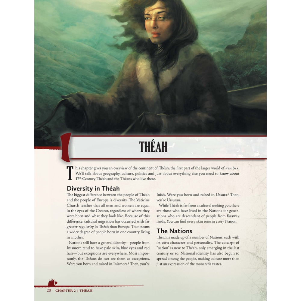 Théah is a world of magic, mystery, and intrigue. A version of Europe seen through the lens of sorcery, danger, and high adventure, Théah is a setting that captures the imagination and breeds story seeds. Your heroes can take to the seas and explore the known world, or have them stay in one country and explore the depth and breadth of the setting.