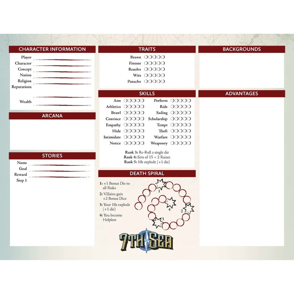 A unique D10-based dice pool system sees players influence and push the narrative in heroic ways. With the guidance of the Game Master, 7th Sea presents mechanics that put you in charge of the action, and provides all the tools you need to craft an imaginative, over-the-top adventure with your tongue planted firmly in cheek.