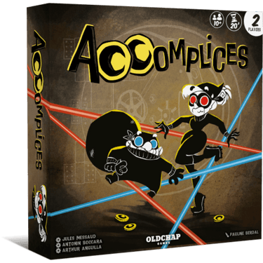 In this cooperative game, players have 2 minutes to steal as many coins as possible without hitting the security lasers present in the room. To do this, each player puts on glasses with a colour filter preventing them from seeing one of the types of lasers (red or blue). The player with the red glasses must then trace a path in the room with the marker in order to recover the pieces, while the player with the blue glasses is his guide. It's up to them to communicate as well as possible to avoid obstacles! Each piece recovered is worth 1 point, each laser hit causes you to lose 1 point. The game is won if the players have won enough points to fill their hideout after 4 rounds.