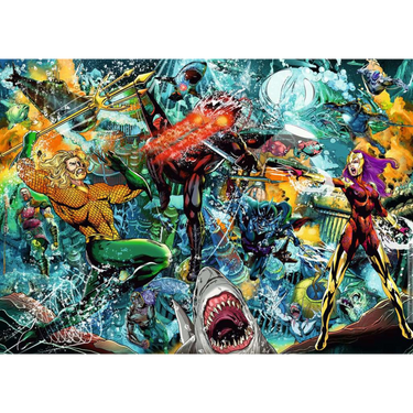 Dive into the depths of adventure with this captivating 1000-piece jigsaw puzzle featuring DC's legendary hero, Aquaman. As you assemble the pieces, you'll reveal the intricate details of Aquaman’s regal appearance and the breathtaking oceanic backdrop that surrounds him. The dynamic colours and detailed artwork capture the essence of Aquaman's strength and his connection to the sea, making this puzzle a true celebration of the King of Atlantis.