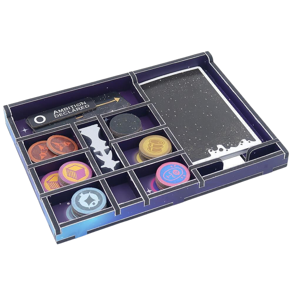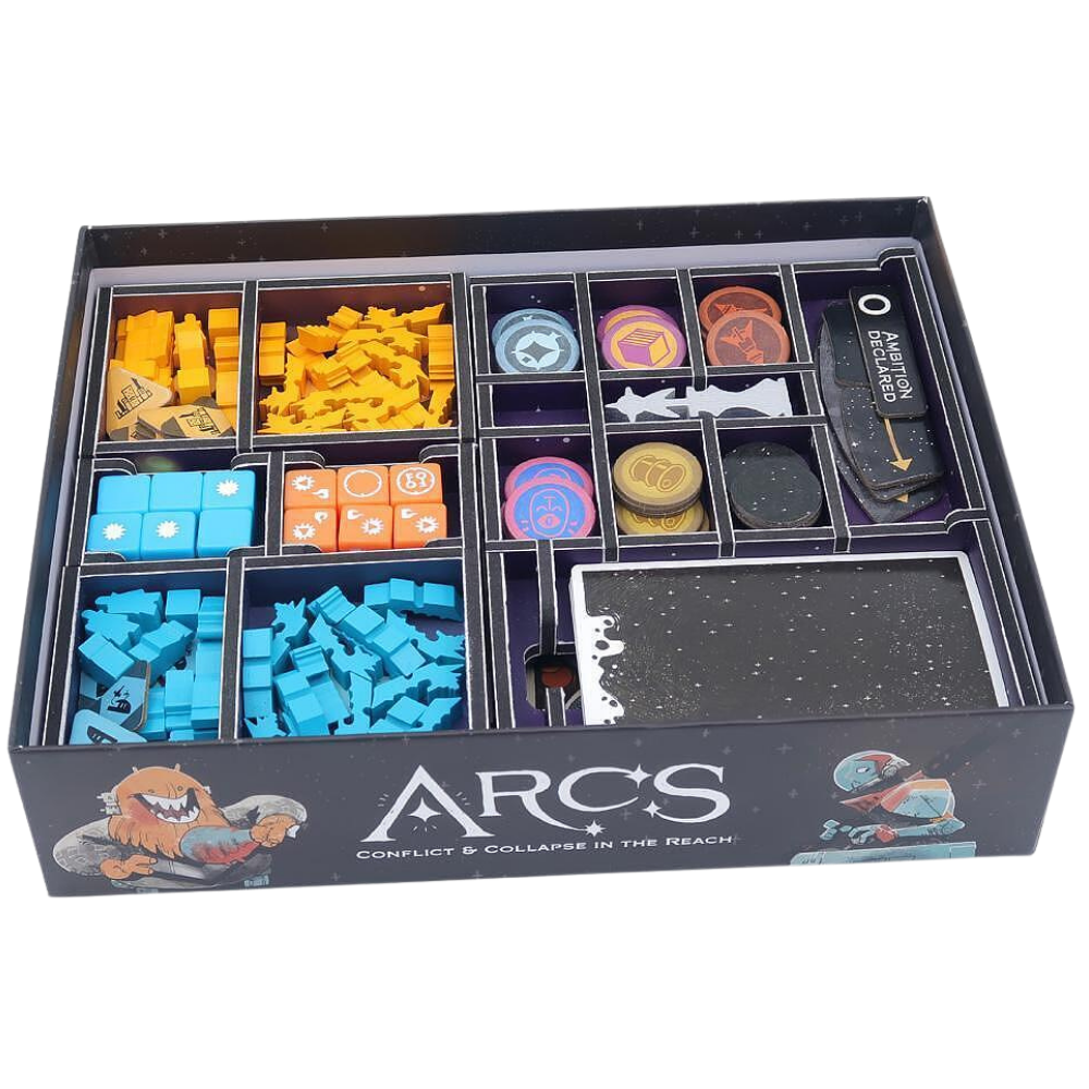 Full colour insert compatible with Arcs base game box. Includes space for the Leaders & Lore Pack expansion.