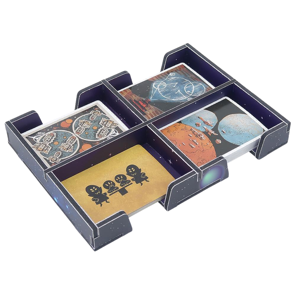 The full colour print really brings the trays to life, tying them in with the theme of the game and making it easier to see which components go where.