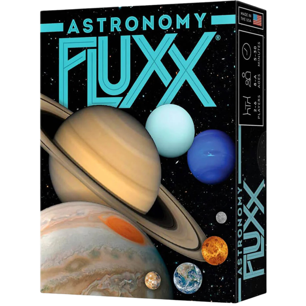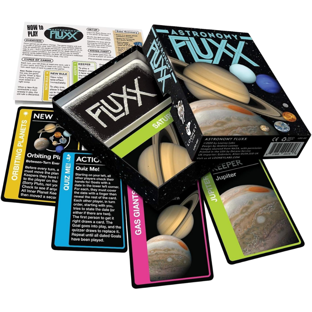 Astronomy Fluxx takes you to outer space, featuring stunning NASA photographs of planets and other astronomical objects. Learn about space and humankind's space flight history in this latest installment in the educational Fluxx series.