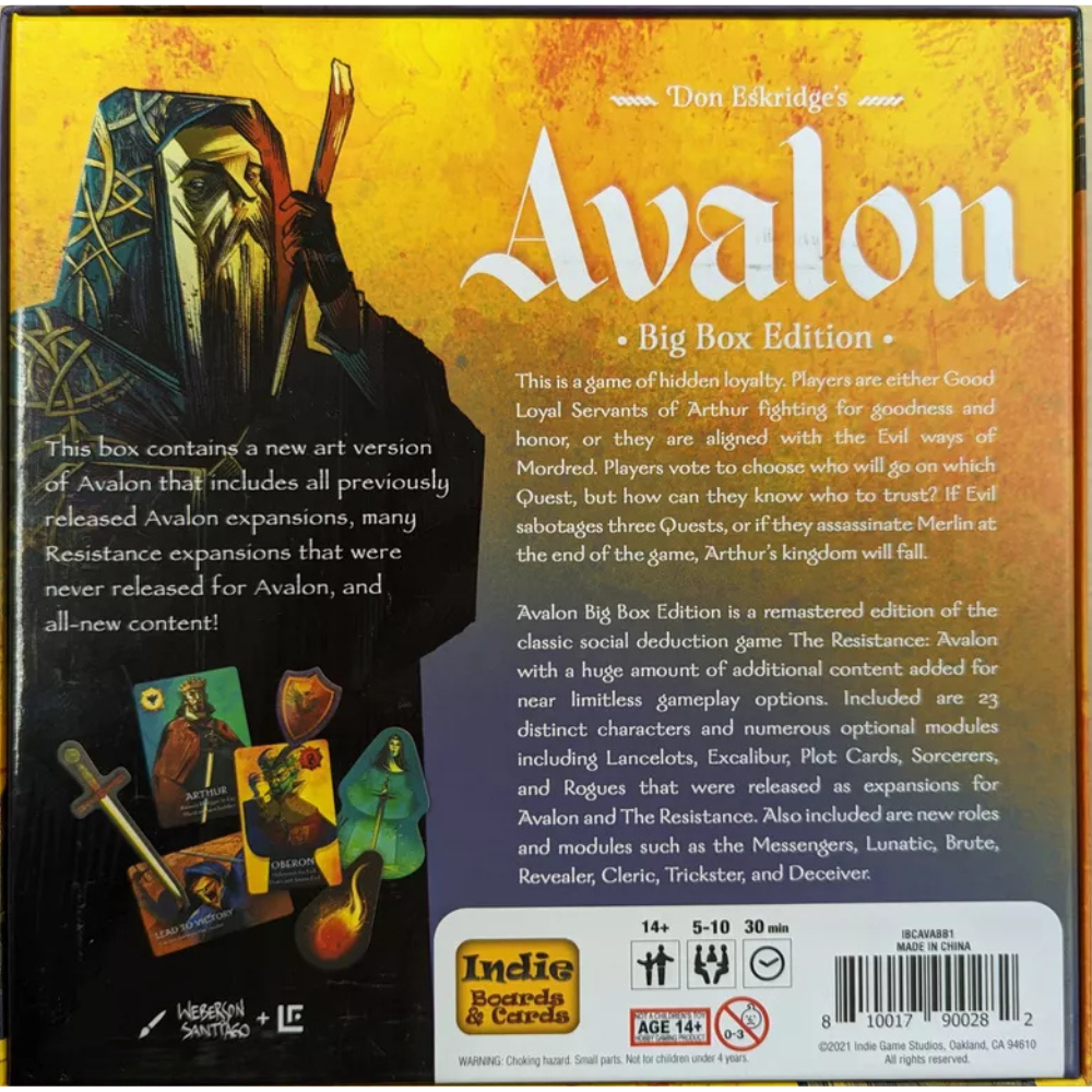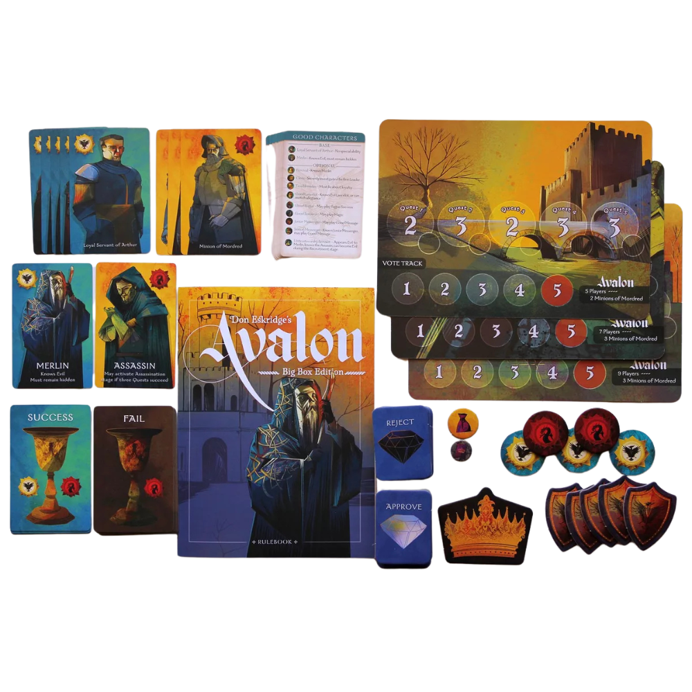 Avalon Big Box is a remastered edition of the classic social deduction game The Resistance: Avalon with a huge amount of additional content added for near limitless gameplay options.