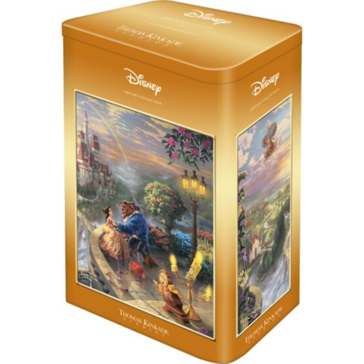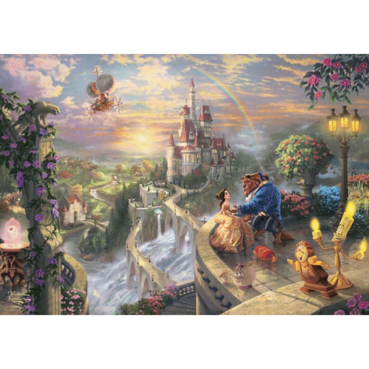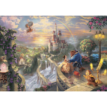 Of all the Disney love stories, perhaps Beauty and the Beast is the most poignant. Beast's true identity is a charming prince who is discovering love in the form of the beautiful Belle. This jigsaw celebrates that magic moment when they first begin to discover their love for each other. Many of the characters from the movie are present, including Belle's eccentric father Maurice, the wonderful characters of Cogsworth, Mrs. Potts, and of course, Lumiere. In the distance, we see the village that is a central setting for many of the film's most important moments.