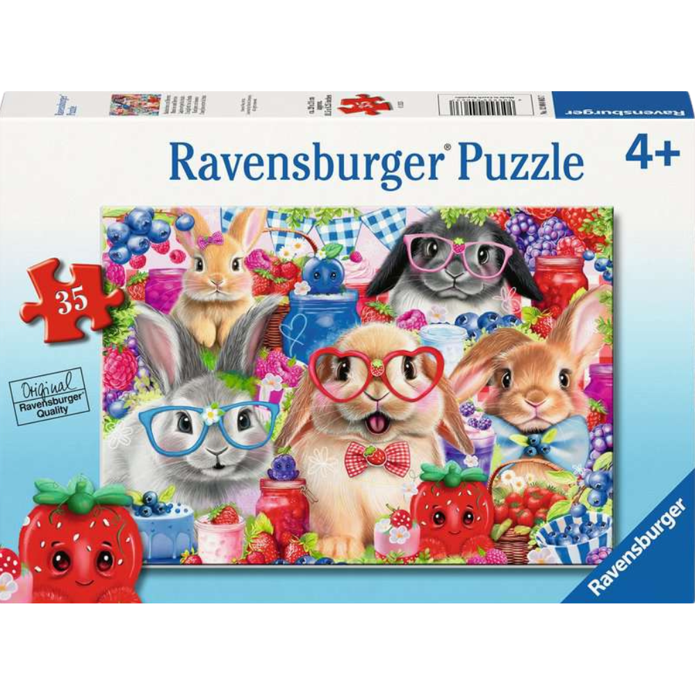 The 35 Piece Puzzle, Bunnies and Berries is an adorable and captivating puzzle. Cute and fluffy bunnies are the central characters of this puzzle with colourful berries scattered throughout the scene, providing a vibrant and tasty-looking feast. Through this enchanting puzzle, children can immerse themselves in a world of bunnies, fostering creativity and an appreciation for these cute animals.