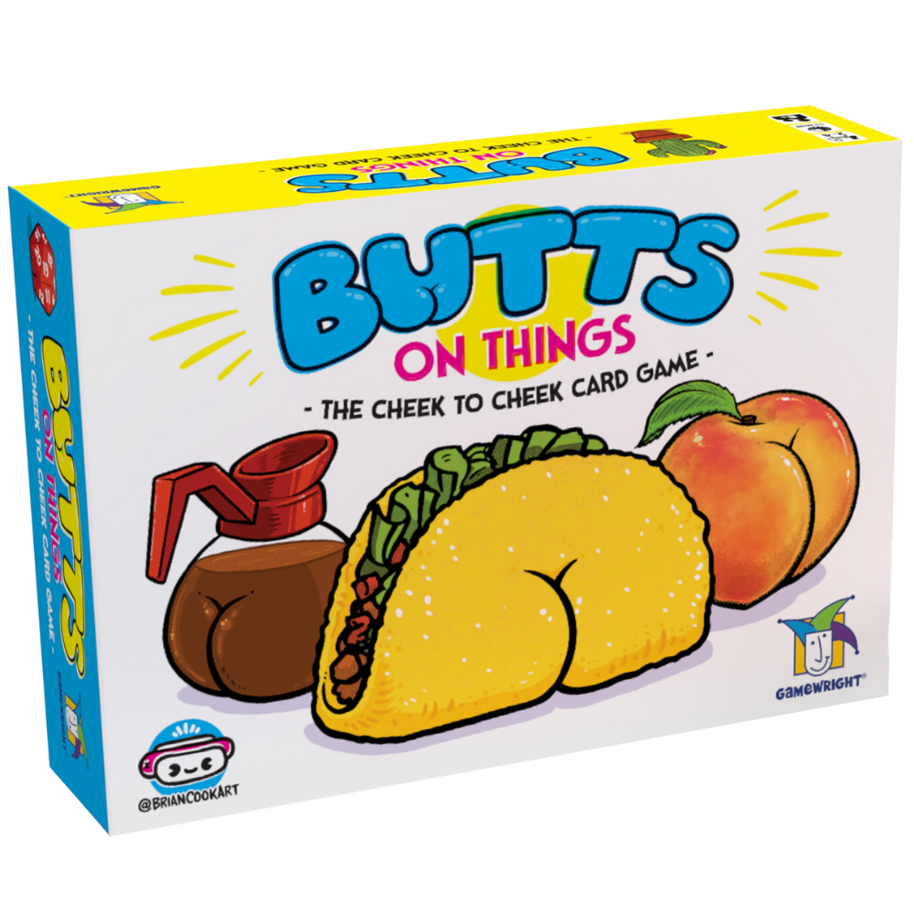 The Cheek-to-cheek card game! Get your rear in gear for this hilarious, fast-playing card game with the cheekiest art around! Play cards to a grid and capture rows or columns when both ends show matching butts! Collect the most cards and you win! No ifs, ands or…you get it. Featuring art by Brian Cook.