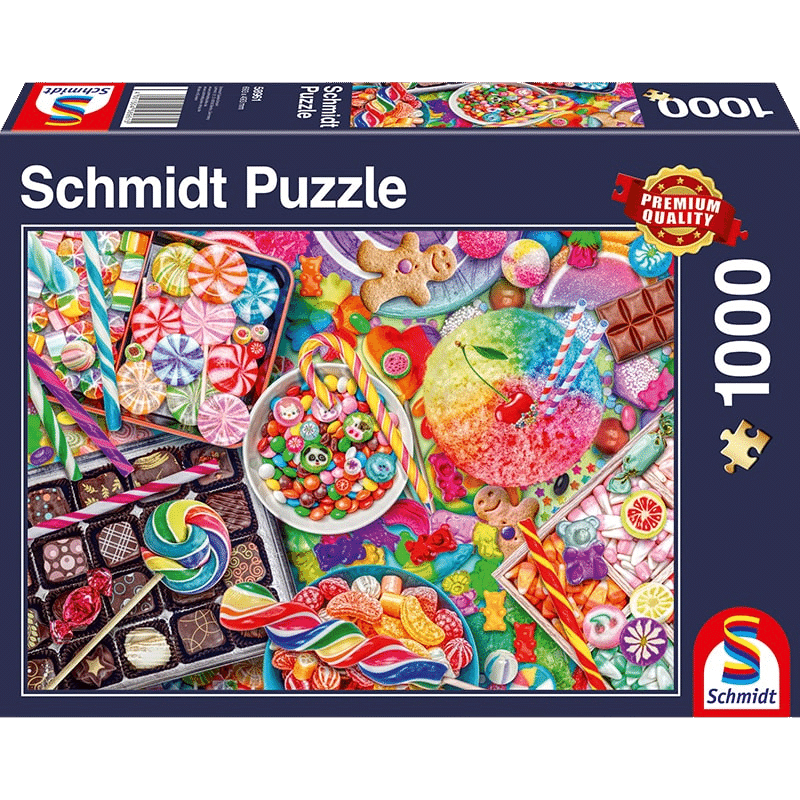 From renowned jigsaw makers, Schmidt, comes this 1000 piece jigsaw featuring an exquisite assortment of delicious sweet treats arranged in an aesthetically pleasing manner!