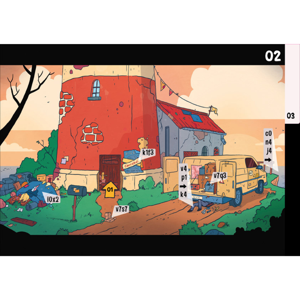 The point-and-click adventure game genre was born in 1976 on the PC. In this type of game, the player assumes the role of a character in an interactive story driven by puzzle solving and exploration. This game is a direct adaption of these mechanics to the cardboard medium that requires no electronics to play. In other words, you are holding a classic point-and-click adventure game in book format. You will talk to characters, combine items to solve puzzles, and explore a unique world to get ahead in the story.