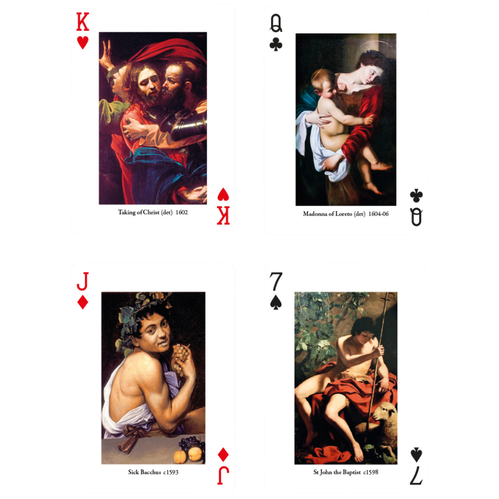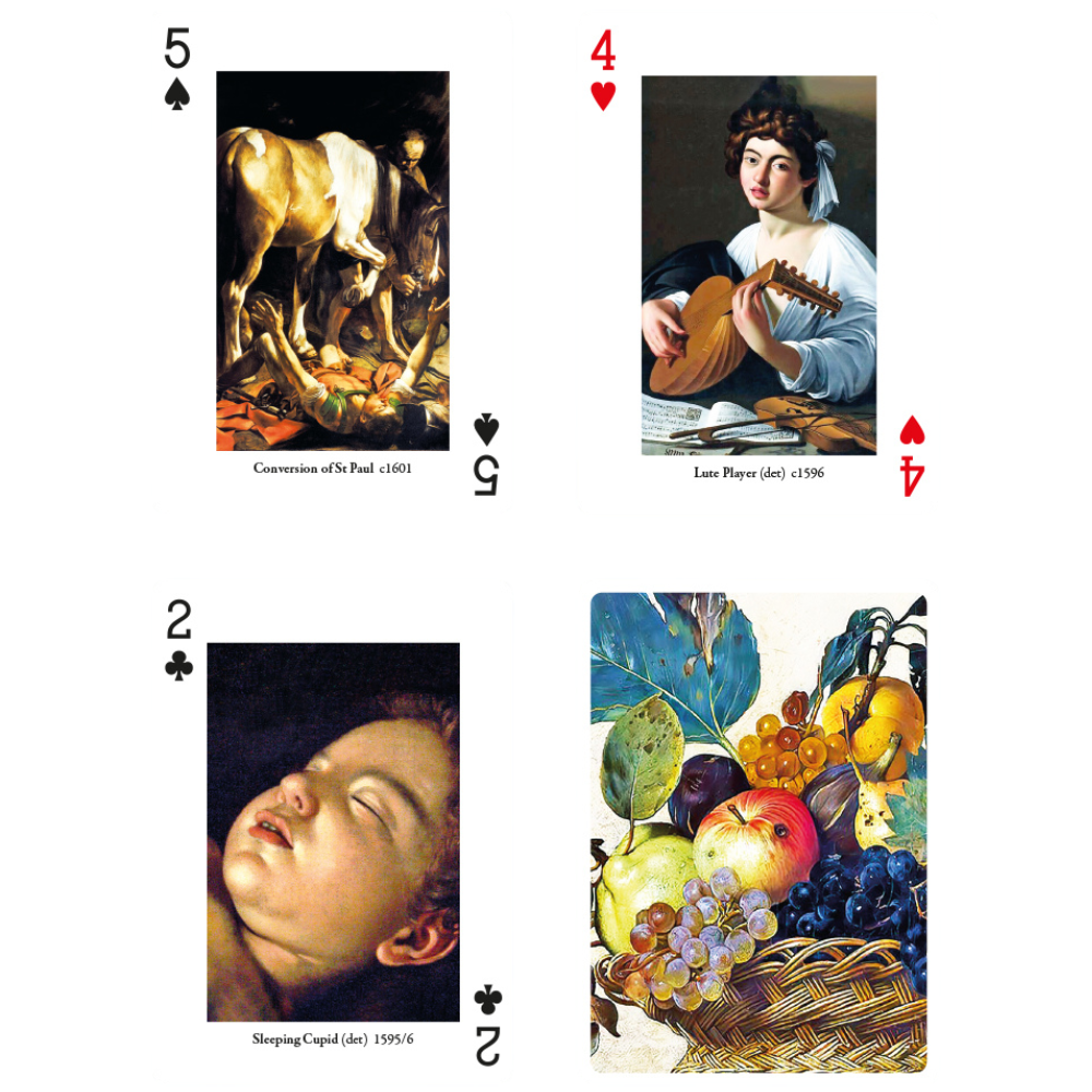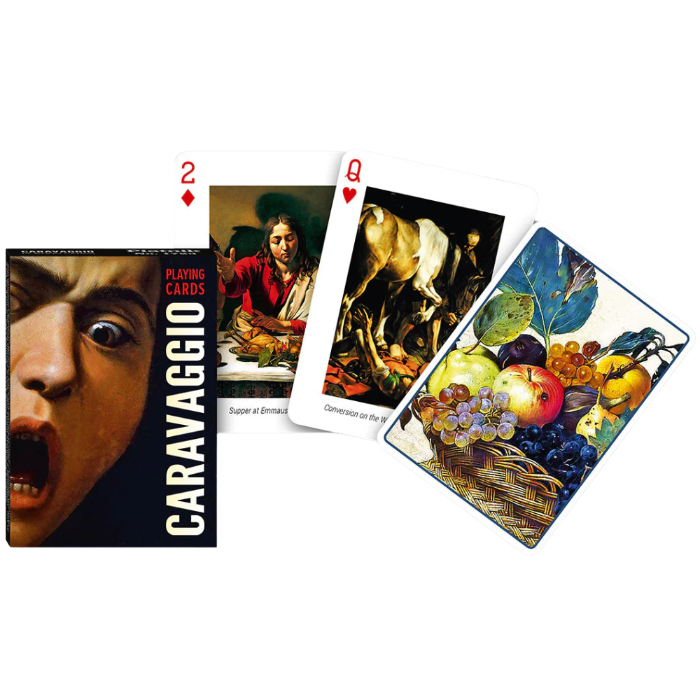 Admire the stunning work of Caravaggio during your next card game with these beautiful Piatnik playing cards. A defining figure in 17th Century Italian art, his unique take on realism inspired the Baroque style of painting of later years.