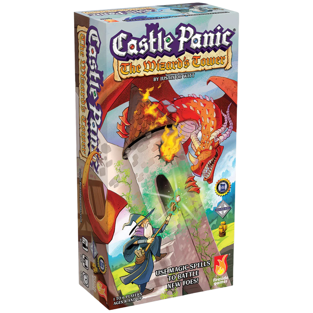 The Wizard's Tower is an expansion for the board game Castle Panic. It is not a stand-alone game and requires Castle Panic to play. The Wizard's Tower is a cooperative board game for 1 to 6 players ages 12 and up.
