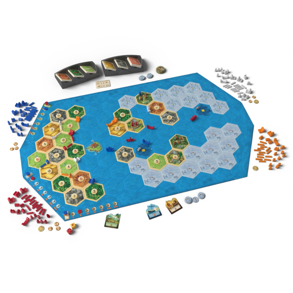 Sent out by the Council of Catan, you set out for uncharted areas to build new outposts. The sketchy information available indicates that dangerous pirate lairs, rich fishing grounds, and helpful villages await you beyond the horizon.