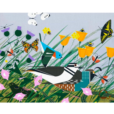Charley Harper (American, 1922–2007) Once There Was a Field Charley Harper’s Once There Was a Field invites us into a wondrous world of birds, blooms, bugs, and butterflies. A breeze. Bees buzz inside buttercups. A bluebird, killdeer, and quail chase grasshoppers on a glorious morning among morning glories. The sounds are long past hearing, the scents past savouring, the sights past seeing, but all will live forever in Harper’s artwork, reproduced for you on this 1000-piece puzzle.