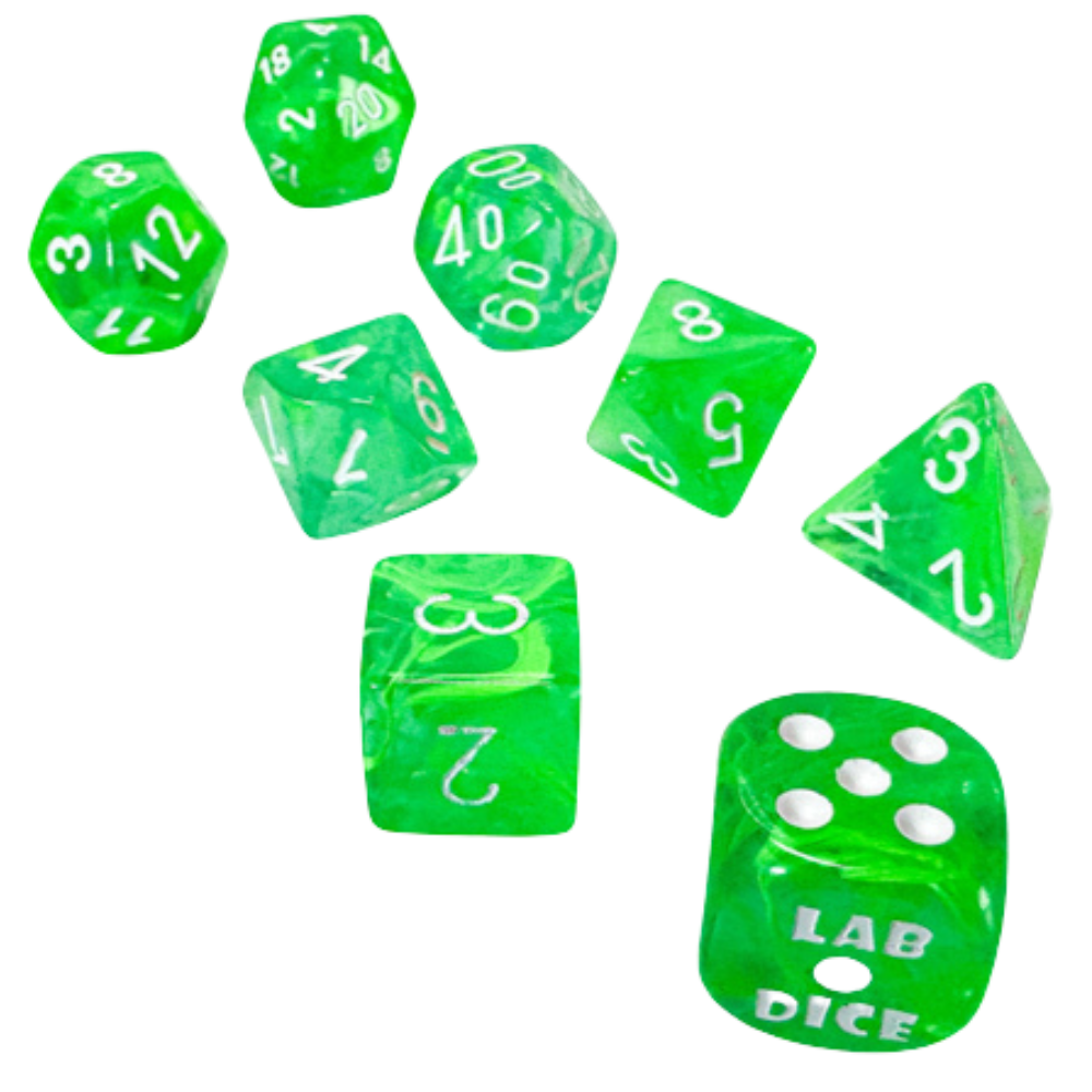 1 x Commemorative 16mm d6 w/pips and Lab Dice Logo.