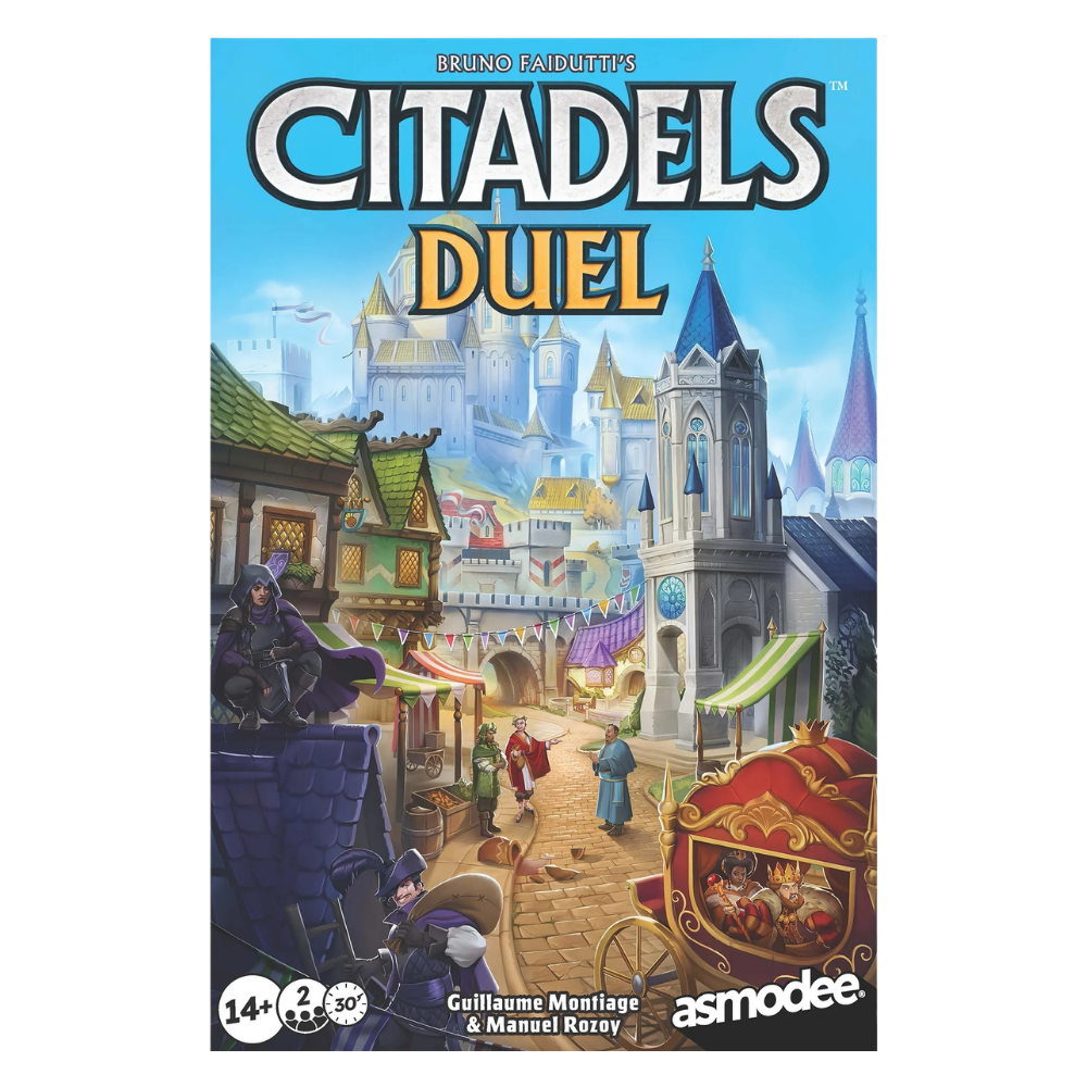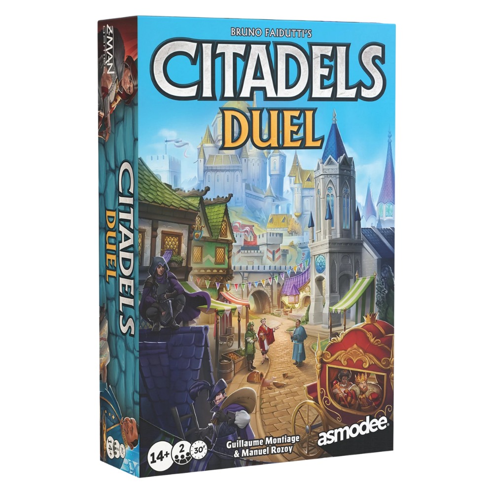 Welcome to Citadels Duel, a tense head-to-head contest of cunning and ambition. Two rival city planners compete to shape the future of the Citadel, striving to design the district plan that generates the greatest wealth and earns lasting renown.