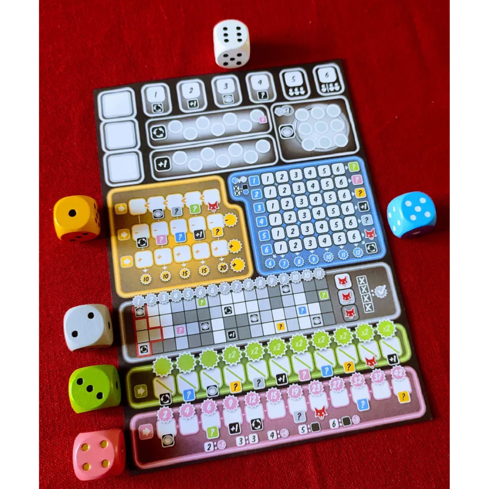 Your goal: Choose dice, then place the numbers into the matching coloured area, put together tricky chain-scoring opportunities, and rack up the points. The dice you don't use are as important as what you do because every die that's smaller than the chosen one can be used by the other players, keeping everyone in the game at all times.
