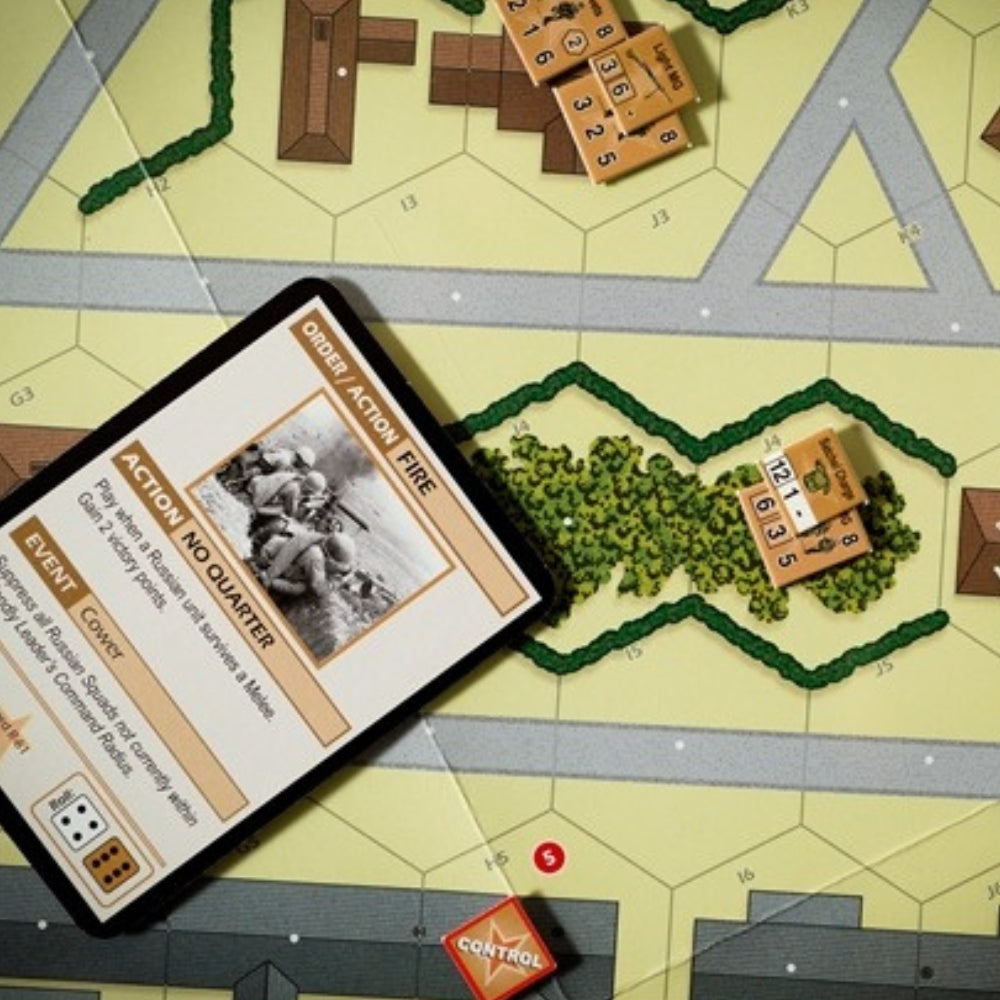 Combat Commander: Europe is a card-driven board game covering tactical infantry combat in the European Theatre of World War II. One player takes the role of the Axis (Germany) while another player commands the Allies (America or Russia). These two players will take turns playing one or more “Fate” cards from their hands in order to activate their units on the mapboard for various military functions.