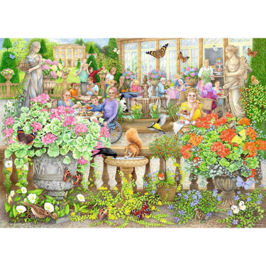 As you step into this world of charm and exclusivity, and assemble the pieces of this 1000 piece puzzle, you'll uncover more than just the delicate china and sumptuous pastries. Nearby wildlife adds an element of natural wonder - butterflies fluttering gracefully, birds singing their melodies, and perhaps a squirrel curiously exploring the scene.