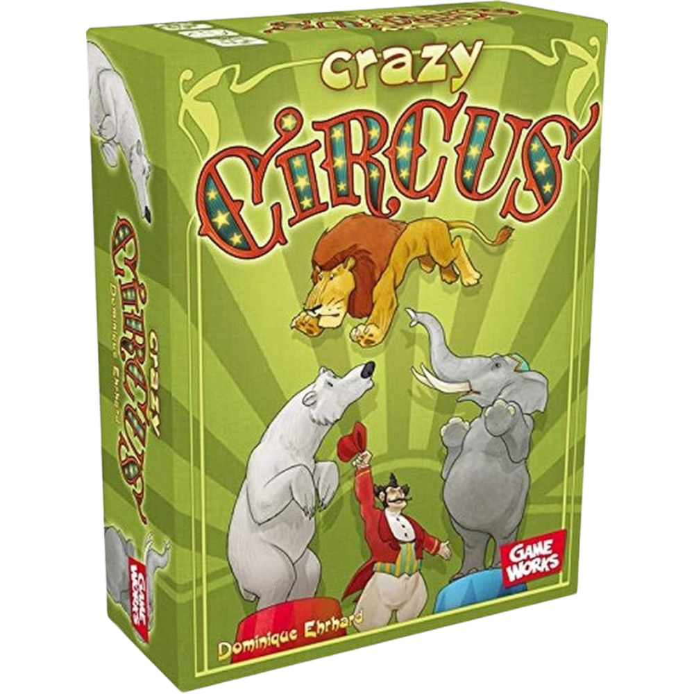 Crazy Circus – one of many names under which this design has been released – is a simultaneous puzzle solving game. Three animals stand on two platforms, and you are trying to change their configuration to match a target card by issuing commands like "Ma", which moves the bottom animal on one platform to the top, or "Ni" which swaps the top two animals on the two platforms. As a result, the game is a race to shout out multi-syllable commands such as the eponymous "MaNiKi", or "LoNiMaSo". The first player to do so correctly wins the target card, and whoever collects the most cards wins!