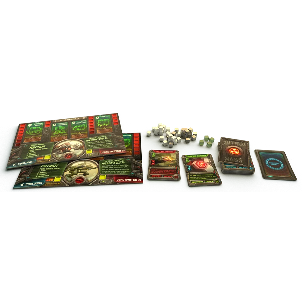 Critical Mass is a fast-paced mech combat game. Players go head-to-head in this fighting-strategy game with deck-building aspects. Players choose their favorite mech to battle it out, with each mech offering a different loadout of cards to start the game and unique powers.