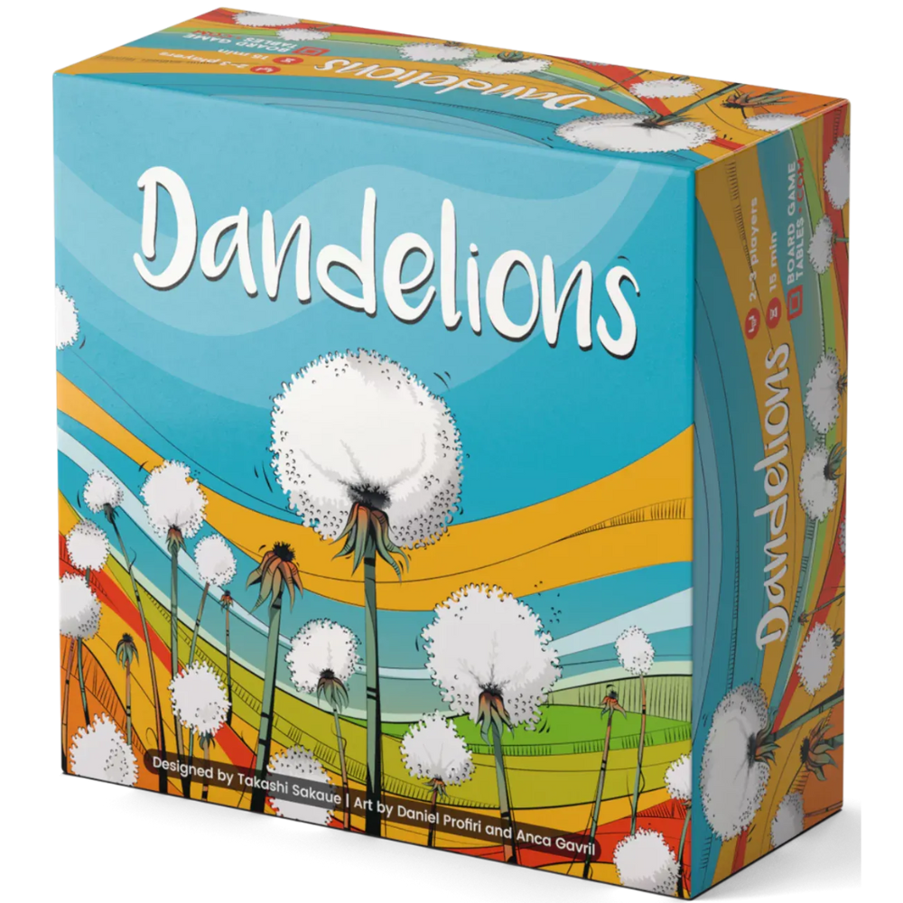 In Dandelions, players roll a group of dice, then choose one to move to a beautiful garden. Along the way, you can harness the power of the wind with three special actions — float, puff, and gust — to get the most points. The game ends after all the dice are used, and whoever receives the most victory points as combined from two different scoring methods wins.