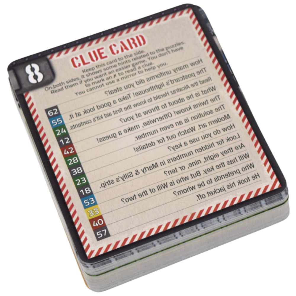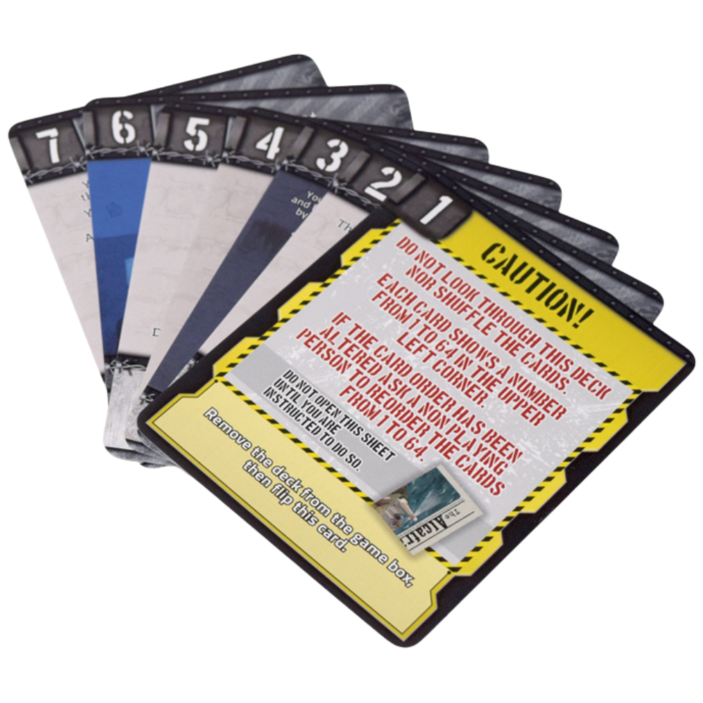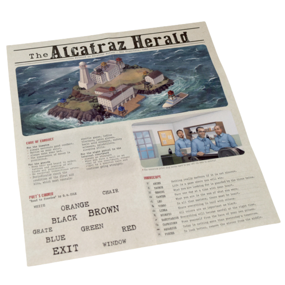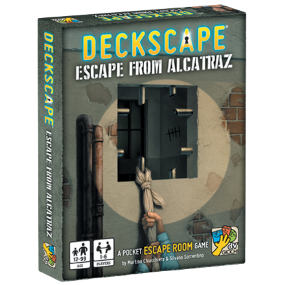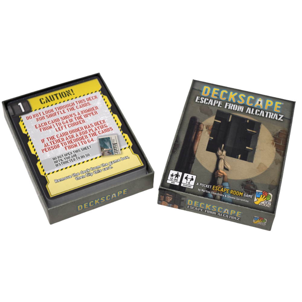 Deckscape: Escape from Alcatraz is the seventh title in a series of co-operative games inspired by real escape rooms in which a group of people is "trapped" inside a room full of puzzles and odd items. The goal of the game is to solve puzzles, understand the plot of the story, and make intelligent use of the items provided in order to exit from the room as quickly as possible.