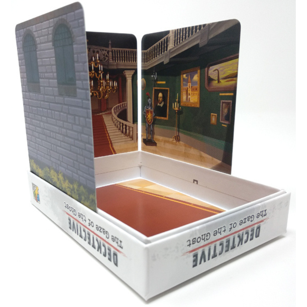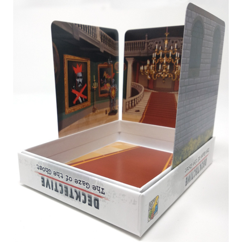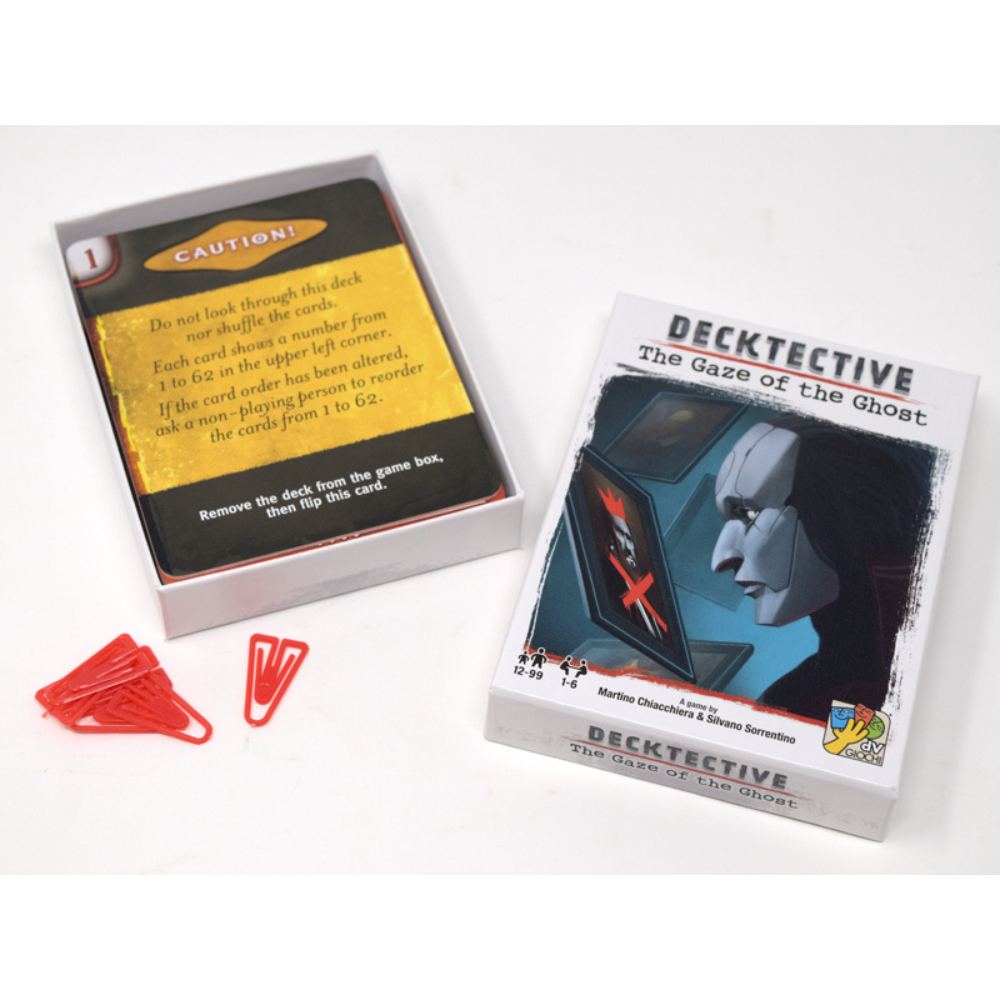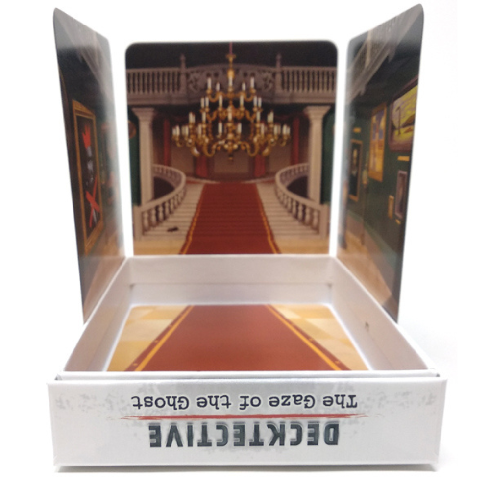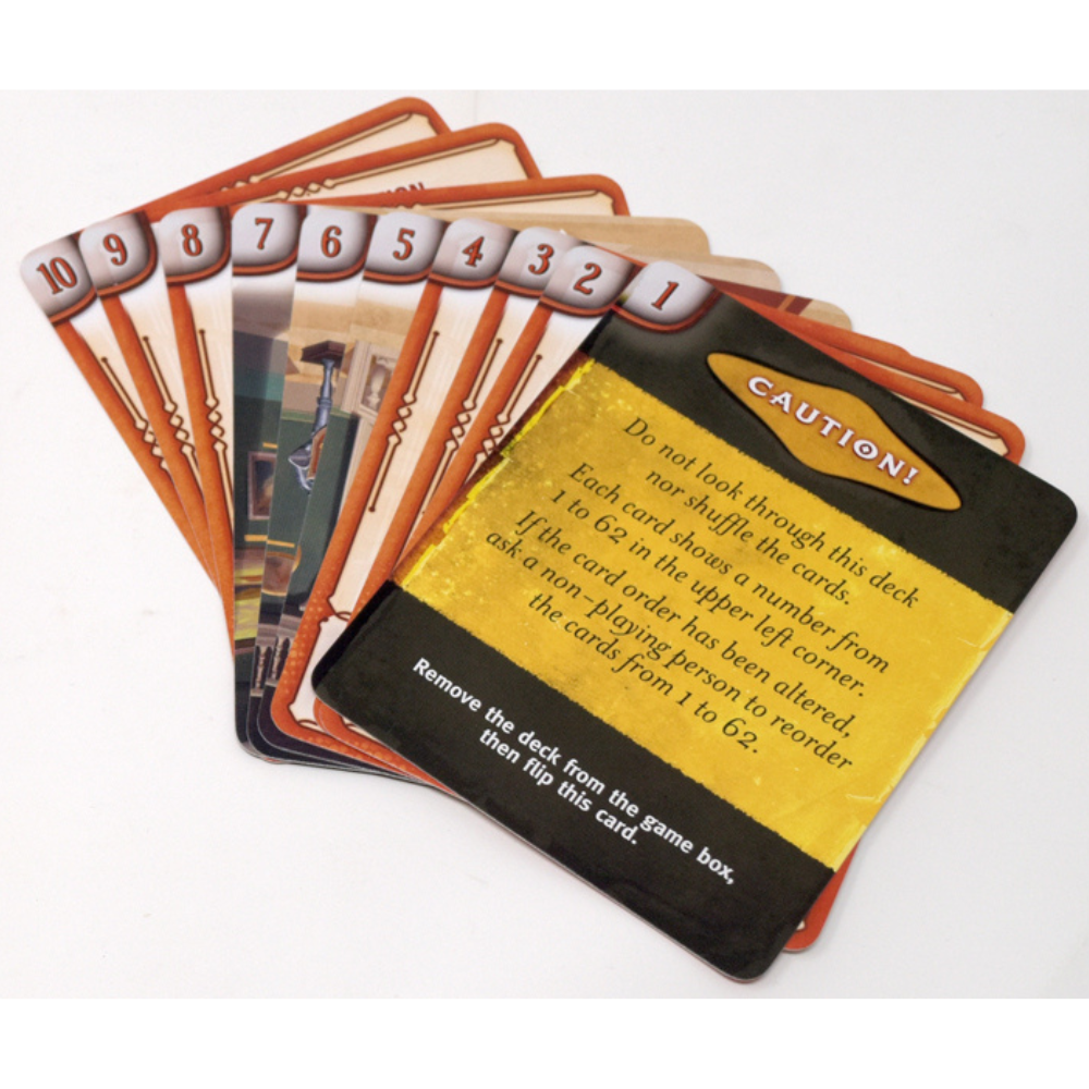 In a Deck of cards, a mysterious case for true Detectives. Players play their cards to share information, discard cards that they think will lead them the wrong way, discuss the clues they find with the other players, make hypotheses and deductions to find the solution! At the end of the game, players must answer several questions: Each correct answer is worth points. The more points they get, the better their outcome.
