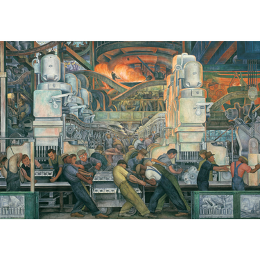 During the Great Depression, a series of commissions allowed Mexican muralist Diego Rivera to leave his mark on the walls of the United States. William Valentiner, the director of the Detroit Institute of Arts, commissioned him to paint the walls of the museum's classical Garden Court. Edsel Ford, the president of the Ford Motor Company, agreed to fund the project and became a great champion of the artist. The vast factory Ford built on the Rouge River, where Rivera spent days sketching, provided the images for the mural’s largest panels, including the one reproduced for this 1,000-piece jigsaw puzzle.