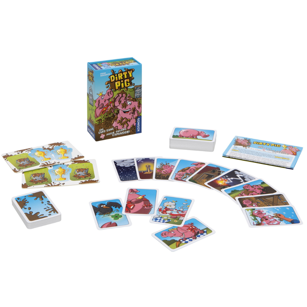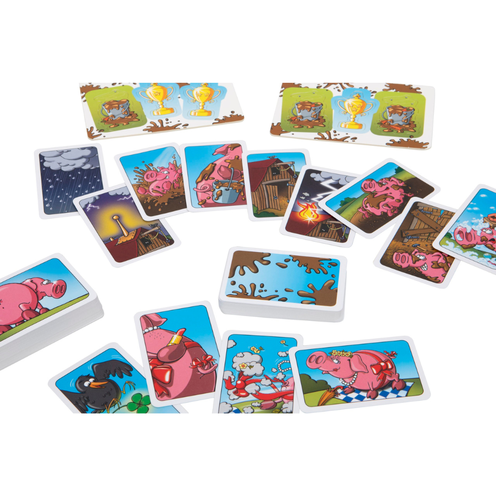 Into the mud — because pigs feel fabulous after a good wallow! Unless you’d rather send them to the beauty pageant? The first player to collect a drove of all dirty or all pretty pigs, wins!