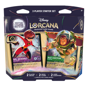 This official starter set gives two players everything needed to play right out of the box with balanced, ready‑to‑play decks and all essential accessories. It’s ideal for new players learning the game together, family game nights, or anyone looking to dive into the magical world of Lorcana without building decks from scratch.